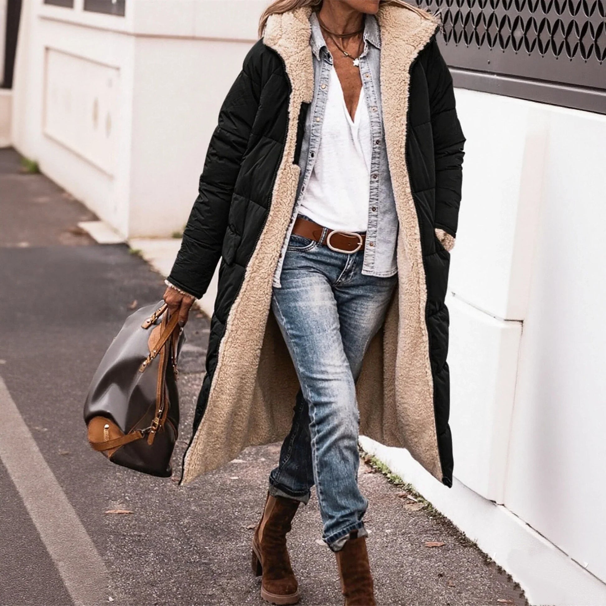 Women’s Long Quilted Coat with Hood | Classic Length | Warm & Refined | Winter Wear